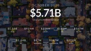 This trend was also reflected in our auctions statistics. We had 1,871 scheduled auctions for the month, which was actually 1.6 per cent less than October 2019. (October 2020 had one extra Saturday, and in normal circumstances you would expect this to lift our numbers, however overall numbers were impacted by restrictions in Victoria.) We had so many records in the auction space, including auction day clearance rate at 65.8 per cent, and an average of 5.3 registered bidders per auction. On average, properties that sold at auction achieved a price that was 3.2 per cent over reserve and 10 per cent higher than the best offer received prior.