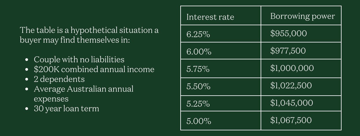 When rates do start coming down again, the good news for borrowers is that borrowing power goes up. This means borrowers are able to lend more without having to increase their incomes or reduce other debt/expenditure.