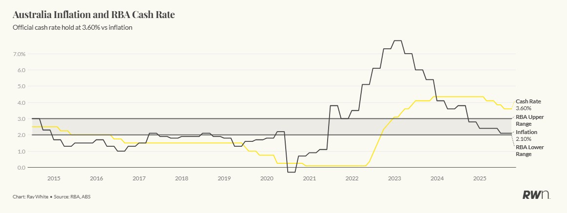 RBA holds rates at 3.60% as inflation resurges to 3.2% annually. Labour market weakens with unemployment rising to 4.5%, leaving the central bank walking a narrow line between price pressures and economic growth.