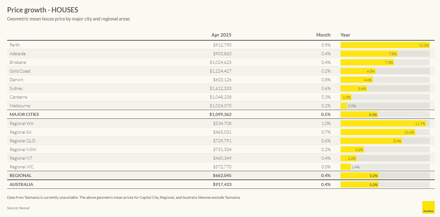 The data presents a clear picture: property price growth that began in January has gained momentum through February, March, and now April. With interest rate cuts on the horizon and increasing investor interest in the stability of residential property amid global volatility, this momentum appears likely to continue through the remainder of the second quarter.