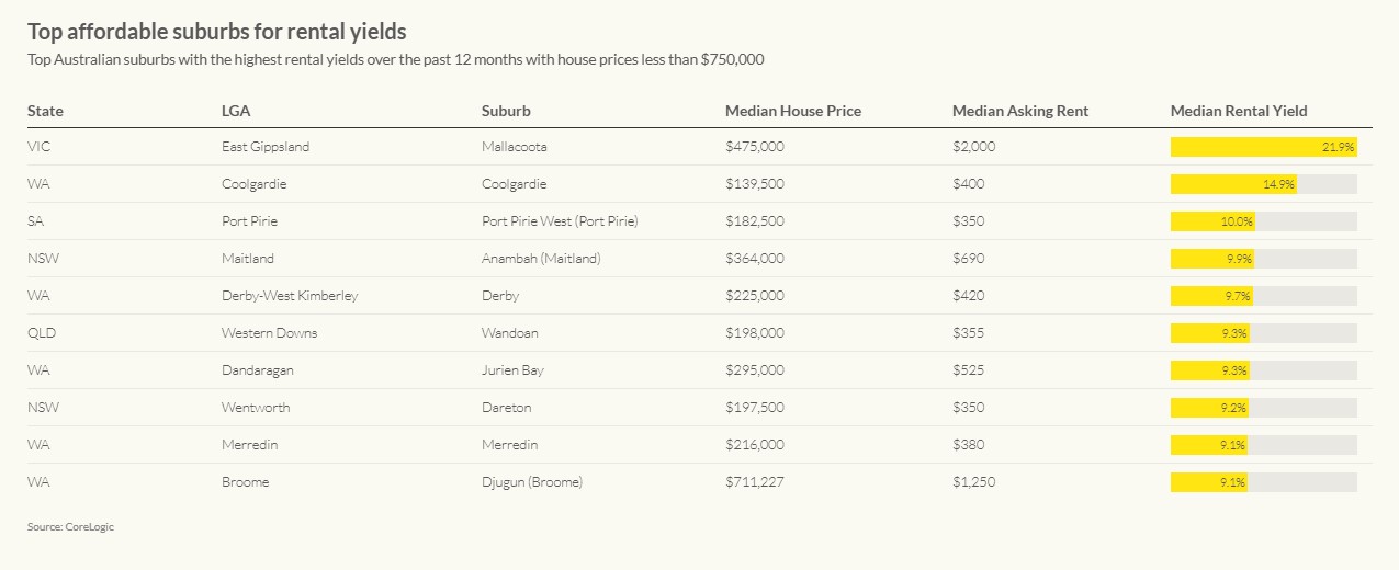 The rental yield data reveals interesting patterns across different states and property price points. While the highest yields often come from very regional or specialised markets, there are opportunities in the 6-10 per cent yield range that may offer better long-term stability. Areas like Derby in Western Australia or Wandoan in Queensland provide solid yields of around 9 per cent while maintaining more diversified local economies.