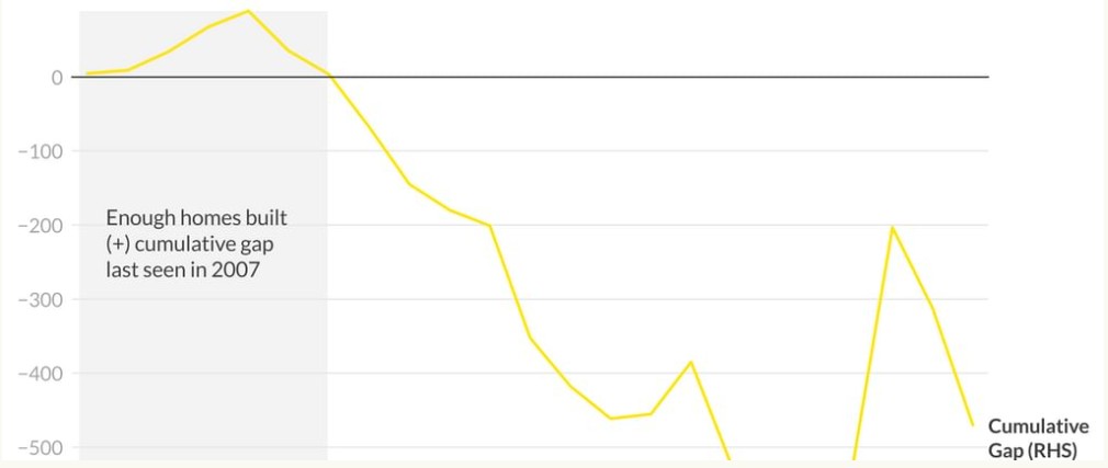 We have underbuilt for almost two decades. Even if demand moderated, we would still need to deliver around 225,000 to 240,000 homes each year to restore balance. Completions currently sit closer to 190,000. The deficit grows every year we miss that mark.